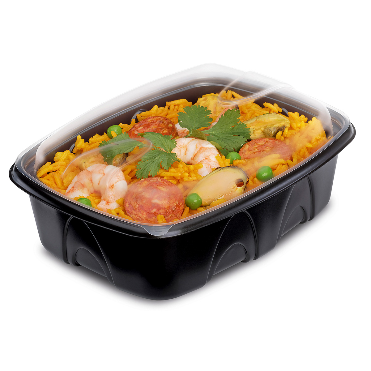 La boite alimentaire Archipack fond noir et couvercle transparent est très pratique pour le conditionnement, la vente à emporter et la livraison de tous vos plats cuisinés. Le couvercle clipsable assure une étanchéité parfaite de l’ensemble pour conditionner et livrer tous vos plats en sauce. La forme bombée du couvercle est étudiée pour que vos préparations ne soient pas au contact de celui-ci 	 résultat : Vos petits plats sont mis en valeur. La boite Archipack sera parfaite pour une présentation en vitrine et vos clients pourront réchauffer leur plat au four micro-ondes.