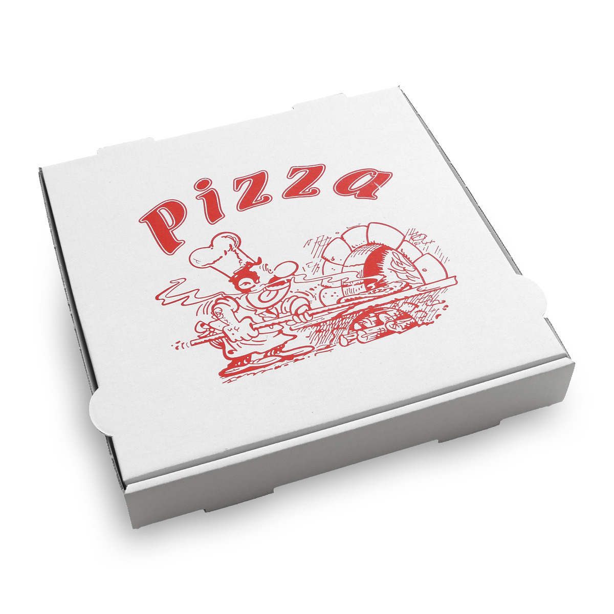 Cet emballage à pizza de qualité standard avec impression générique « Pizzaiolo » est disponible dans les dimensions suivantes :