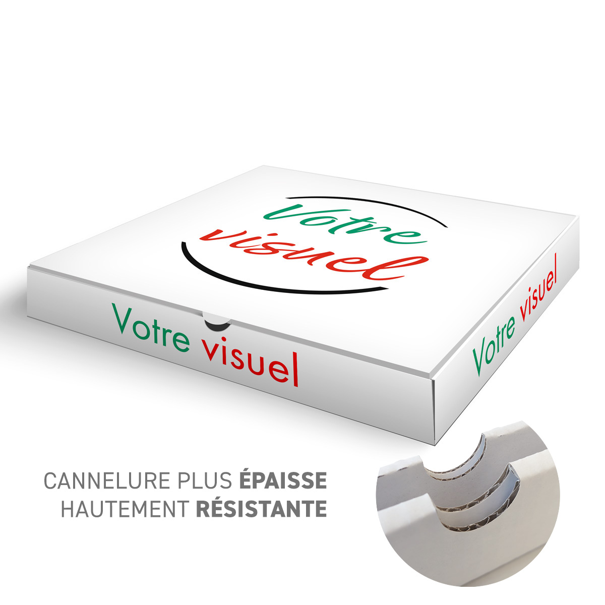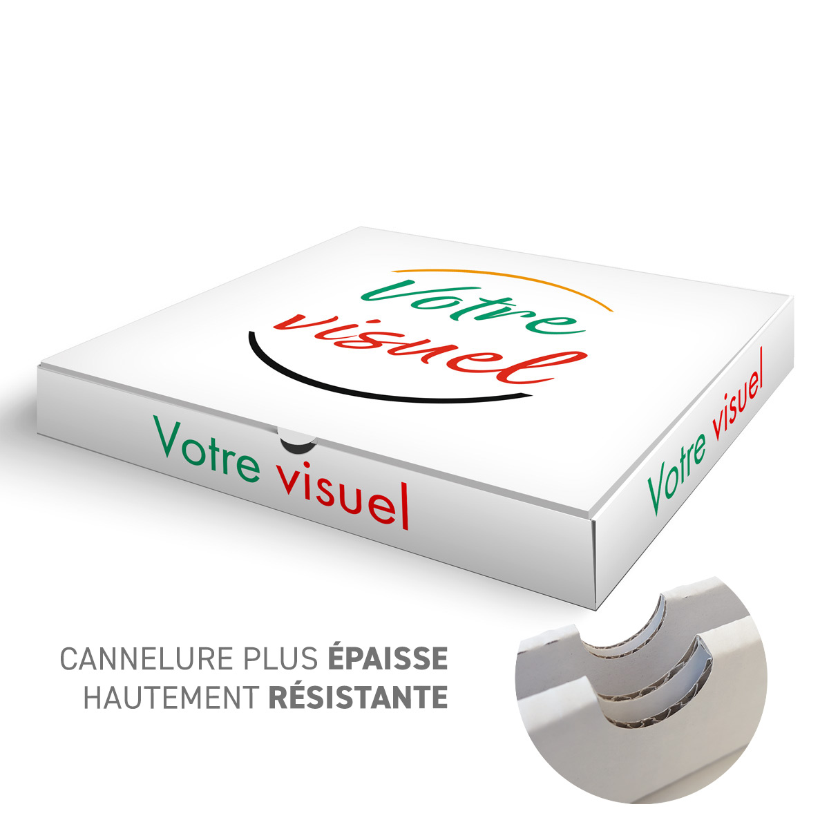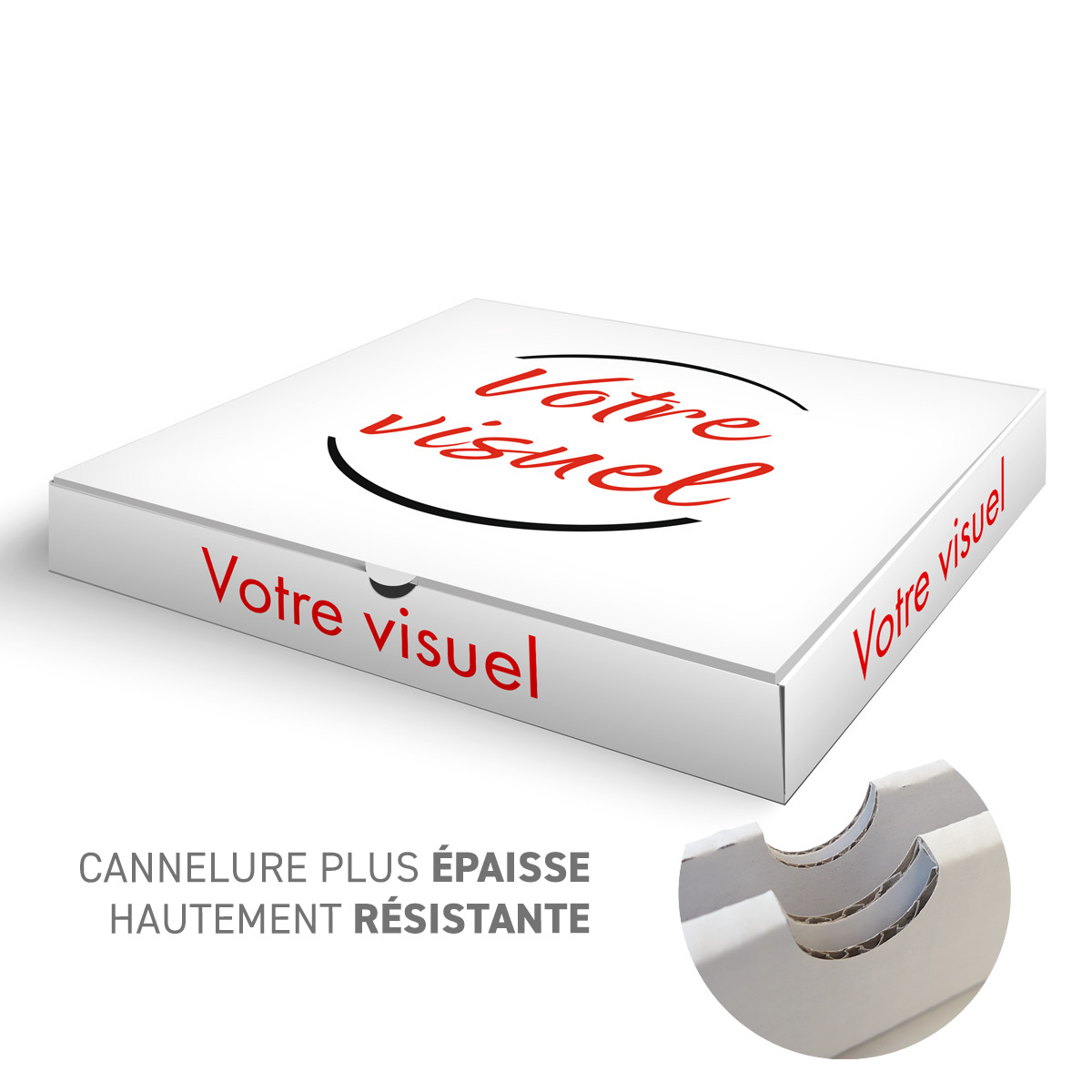 POUR INFO : Cette typologie de carton ultra résistante est très appréciée de nos clients pour la vente à emporter ou la livraison des pizza de grande taille.